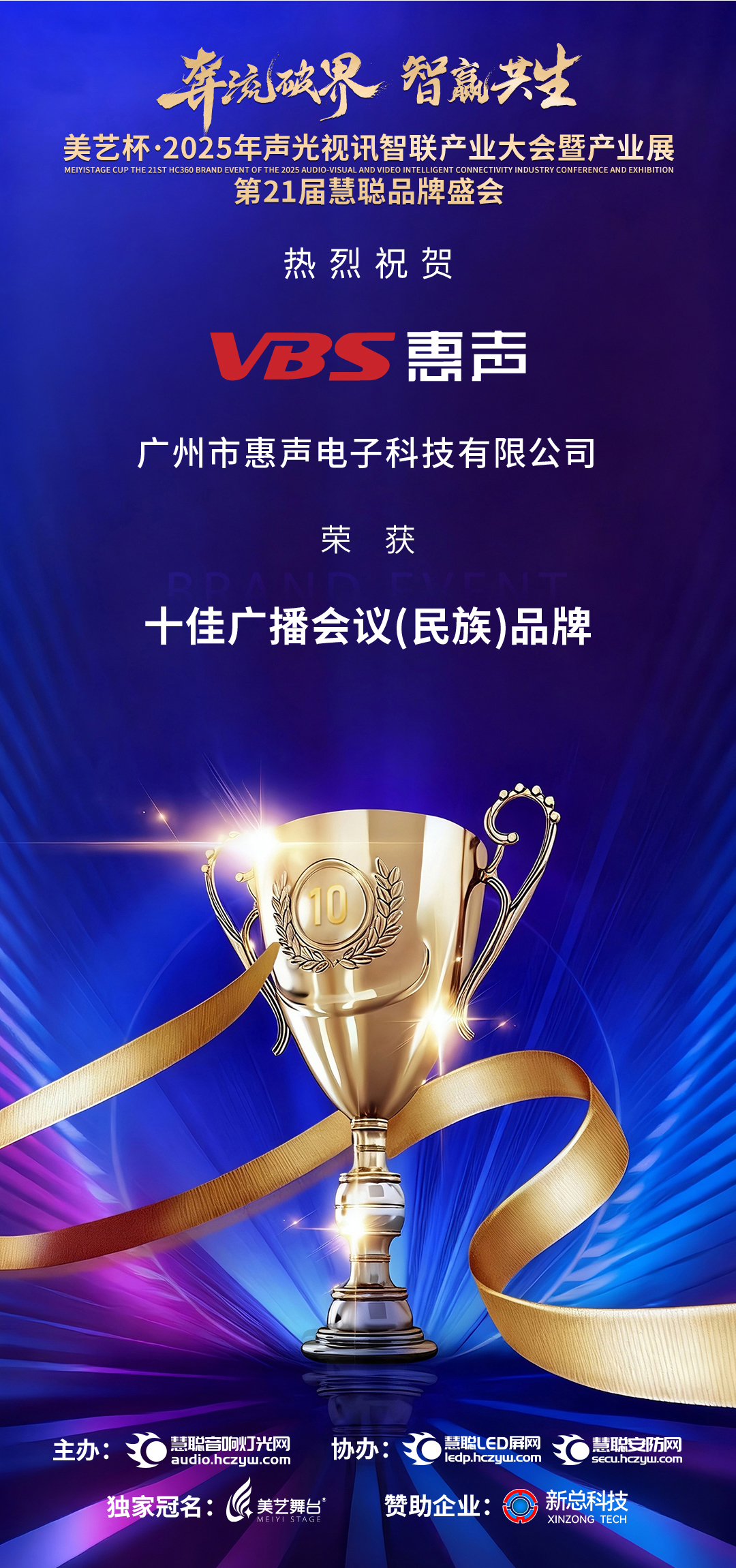 品牌之光,聲動(dòng)未來(lái)!熱烈祝賀VBS惠聲榮獲“十佳廣播會(huì)議民族品牌”